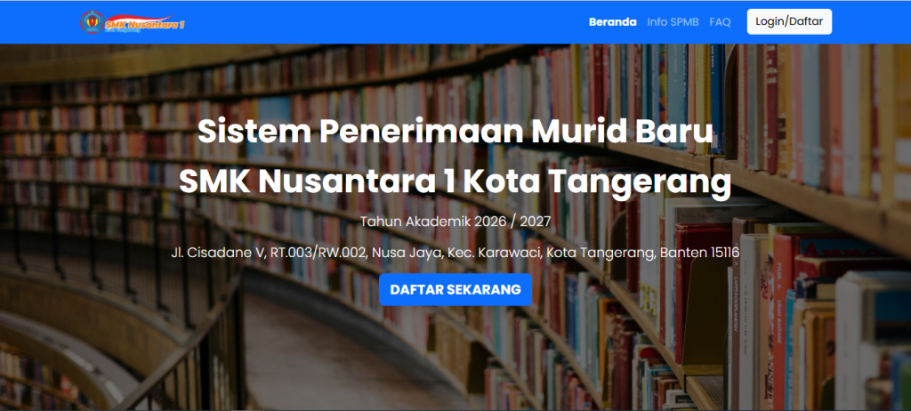 SMK Nusantara 1 Kota Tangerang secara resmi membuka Sistem Penerimaan Murid Baru (SPMB) untuk tahun ajaran terbaru. Pendaftaran ini ditujukan bagi lulusan SMP/MTs atau sederajat yang ingin melanjutkan pendidikan ke jenjang Sekolah Menengah Kejuruan dengan sistem pembelajaran yang terarah dan berbasis kompetensi.